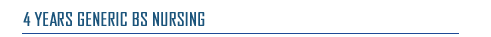 The GENERIC BS NURSING is a (4) four years programme designed to provide an opportunity to the student nurses to acquire basic knowledge and skills required to practice in nursing profession. To acquire in - depth knowledge and skills required to practice in nursing education, practice and administration. The graduate will be able to contribute their roles in their own capacities for uplifting the professional image nationally and globally.